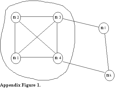 The distances from nodes 1, 2, 3, and 4 (all members of the clique) to node nl are {2, 2, 1, 1} respectively. The minimum of all these distances is 1, therefore the distance from the clique as a whole to the node is defined to be 1.